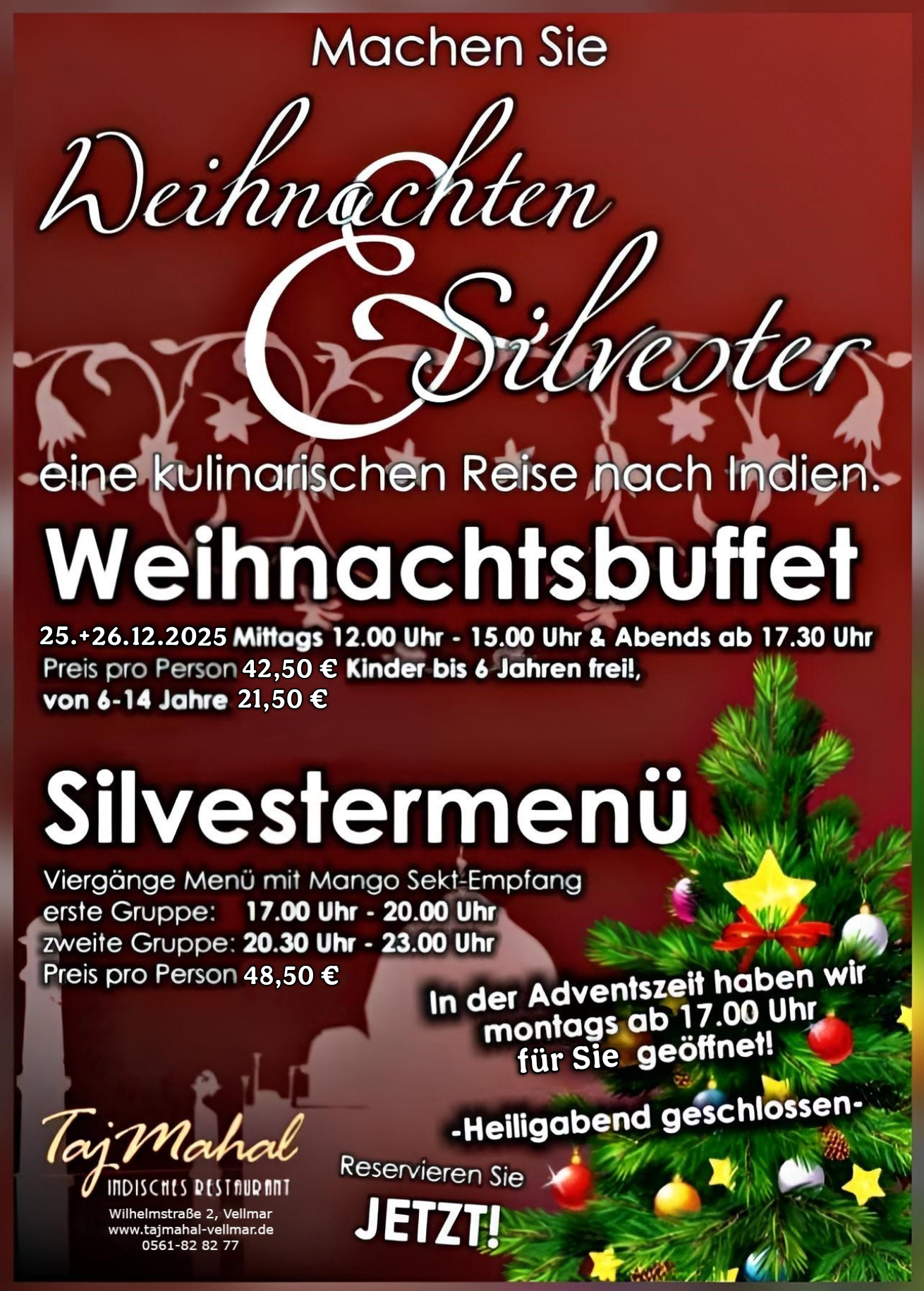 25.+26.12.2024 Geöffnet (Weihnachtsbüffet)